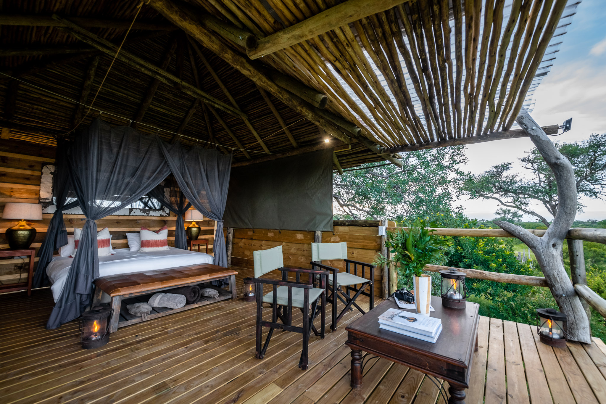 Drifting between cat naps and chapters, you might lift your nose only to watch animals come to drink at nearby watering holes or to identify the flutters of coloured feathers passing you. In winter, you may be curled up beneath blankets on the couch overlooking panoramic vistas.