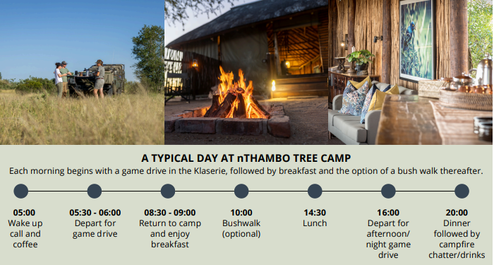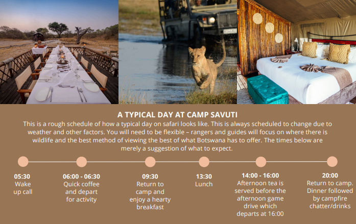 An example of safari daily itinerary for Botswana includes: