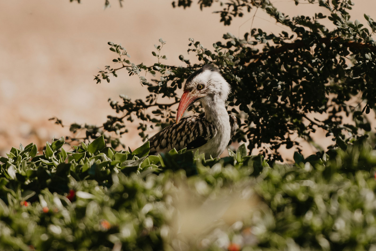 As soon as we arrived at nThambo it felt like a piece of paradise. The front of the lodge has a beautiful garden full of cacti, succulents and flowers. The first thing that caught my eye was the incredible amount of butterflies that were fluttering around the garden. I had never seen so many butterflies in one place! There was a cheeky Red Hornbill trying to catch them who was clearly going to have a great breakfast!