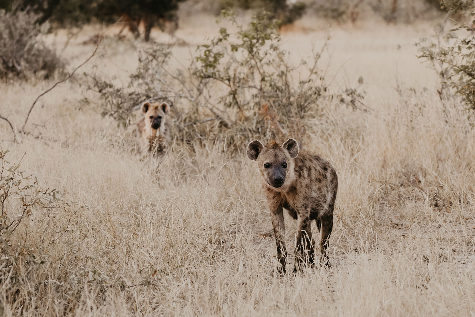 One of my most memorable sightings occurred when we were driving… Elmar suddenly stopped the car and pointed out a Hyena making her way out of the long grass and to our amazement she had a cub with her. The cub came right up to the vehicle and just stopped and looked at us for a moment and then proceeded to follow its mum across the road and back into the bush. Being able to look at the precious young hyenas in the eye, as it looked back at us in return was a real heart melting moment!