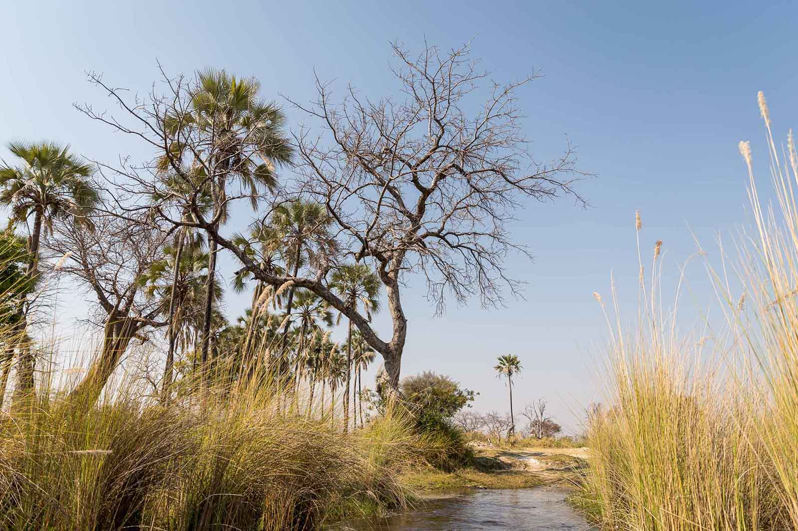 So, just WHERE is Mboma situated? In a sliver of wilderness paradise in one of 3 remote camp sites on the tip of the game rich Moremi Game Reserve. The campsites are located on the floodplains of the meeting point of the Okavango Delta’s waters and the Moremi’s grassland terrain. The camp is flanked by swaying palm trees, and open sections of savannah leading down to reed-lined waterways. For landscape photography, this is the place to be. That iconic shot with the elephant in the foreground with tropical palms resting against blood orange skies? That can be photographed in Mboma’s backyard, along with plenty of other wonderful sightings.