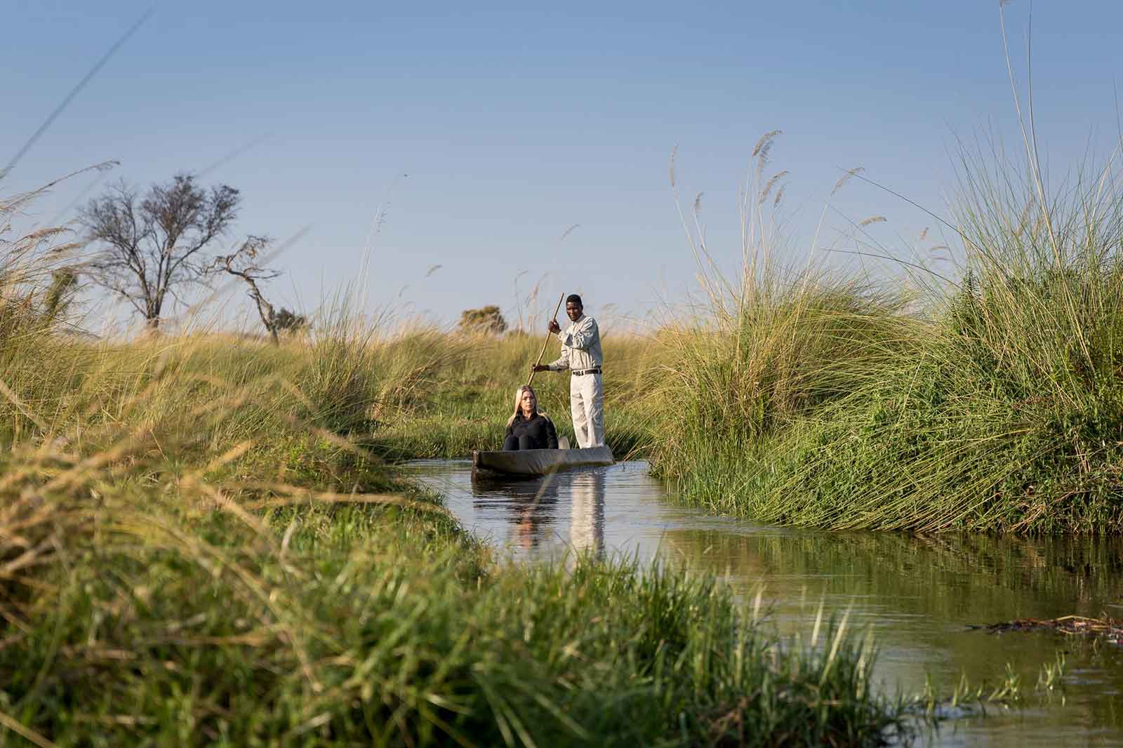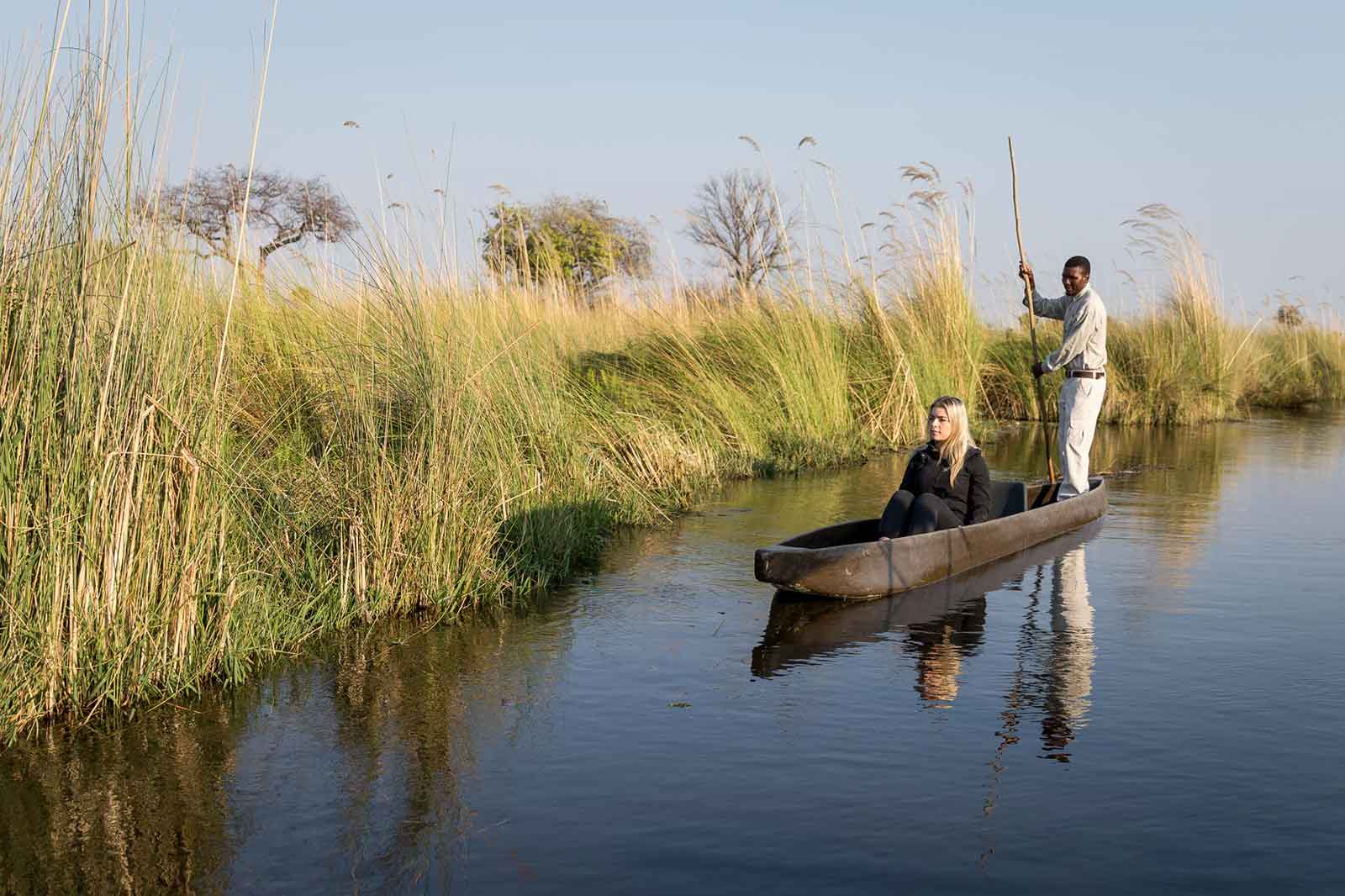 Another exciting activity is the traditional mokoro experience, one of the main highlights of any Okavango Delta safari. A mokoro is a traditional dugout canoe that is used to navigate narrow channels of the Delta, and is controlled by a professional poler who will guide you through the waters. A mokoro excursion provides ample opportunity to see the smaller things like painted reed frogs, sitatunga, and malachite kingfishers.
