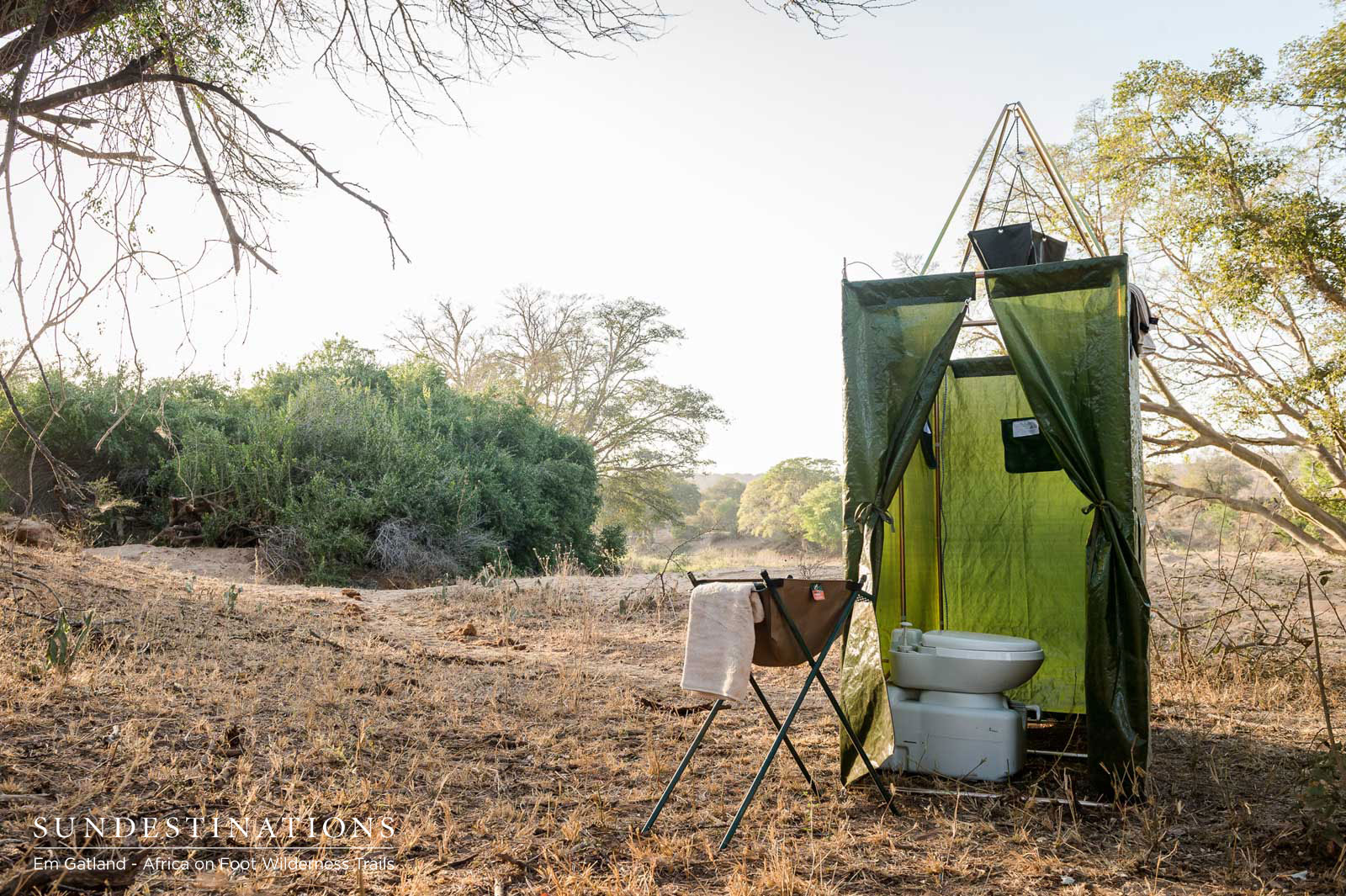 I flew direct to Hoedspruit, which is the best option given that your safari experience is quite physical – conserve your energy for the trail. Upon arrival, the team will transfer you from the airport (for a fee) to your first wild destination. Photographer Em Gatland picked me up from the airport and we bumbled back to the first campsite in the depths of the Maseke Balule Game Reserve, an hour’s drive from the airport heading in the direction of Phalaborwa.