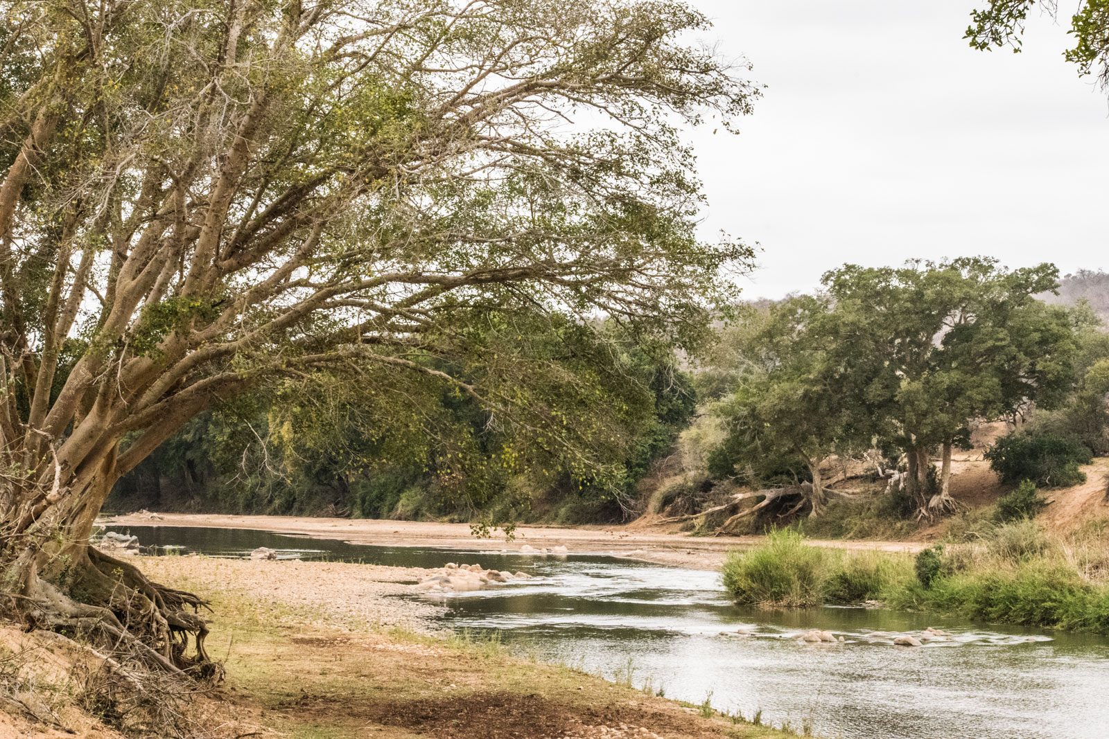 The drive into the first campsite was unique. Rolling landscapes gave rise to Koppies with neatly stacked boulders, intrusive dolerite dykes, and granite intrusions on the banks of the Olifants River. The dusty roads, on each twist and turn, delivered endless views of elephant herds dotted across the horizon.