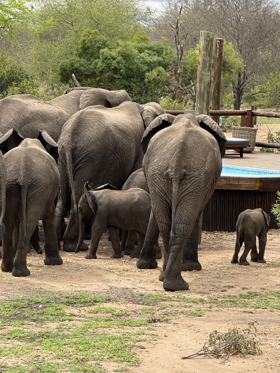 I also stayed one night at Nthambo and had an incredible 2 hour experience hanging out in my treehouse and watching a giant breeding herd zig zag through the trees until they decided to march right into camp and drink from the swimming pool. With binoculars at first, until they were so close I could take selfies from my tree house with them in the background. Everything in camp came to a stop as we all watched the show and started lunch about a half hour late since I had to wait to come down from my treehouse until they passed.