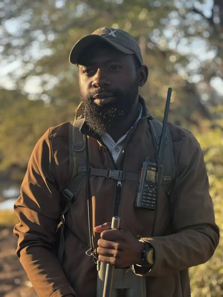 Tracking is where Ntwanano’s story begins. Long before formal training, he learned to read the land as a young boy in his village, following cattle across the terrain. “If I lost a cow, I couldn’t go home,” he recalls. That early responsibility shaped a skillset rooted in necessity, one that has since evolved into a refined craft.