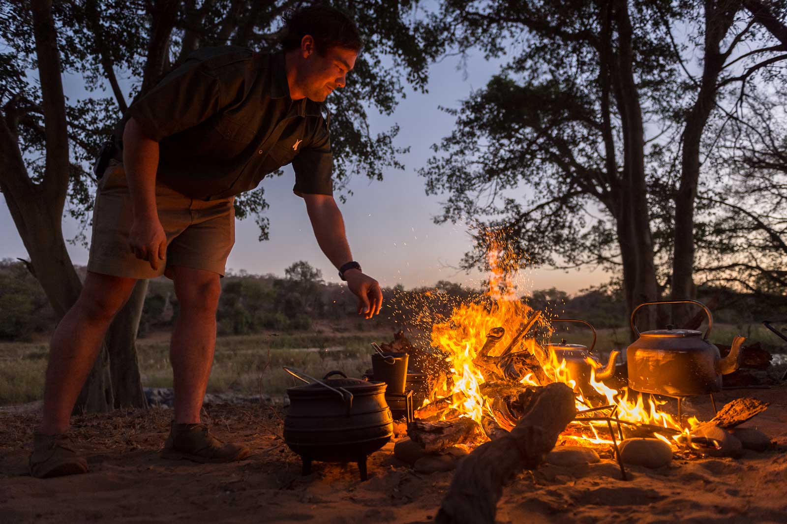 Each day on Wilderness Trails is spent walking through the 8000-hectare reserve in the Greater Kruger Park, and each night is spent at a new, fully set up mobile campsite in a scenic location. A maximum of 8 guests (sleeping in 4 tents) are taken on the Kruger walking adventure of a lifetime, with plenty of stops en route. The terrain is quite flat, but undulating – it’s bushveld walking, not clambering up peaks. A professional Africa on Foot trained guide and tracker team will lead an informative, thrilling, and unforgettable walk in the wild, and end the day off around a crackling fire back at camp with a drink in hand.