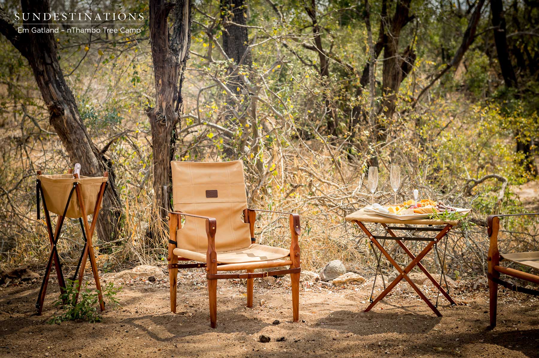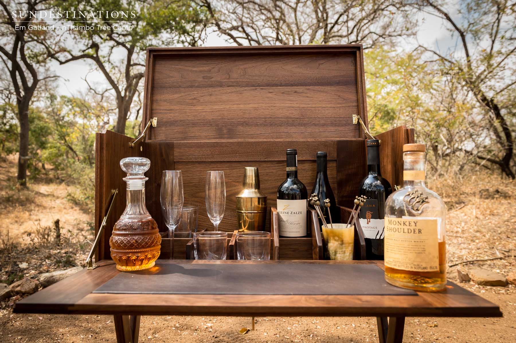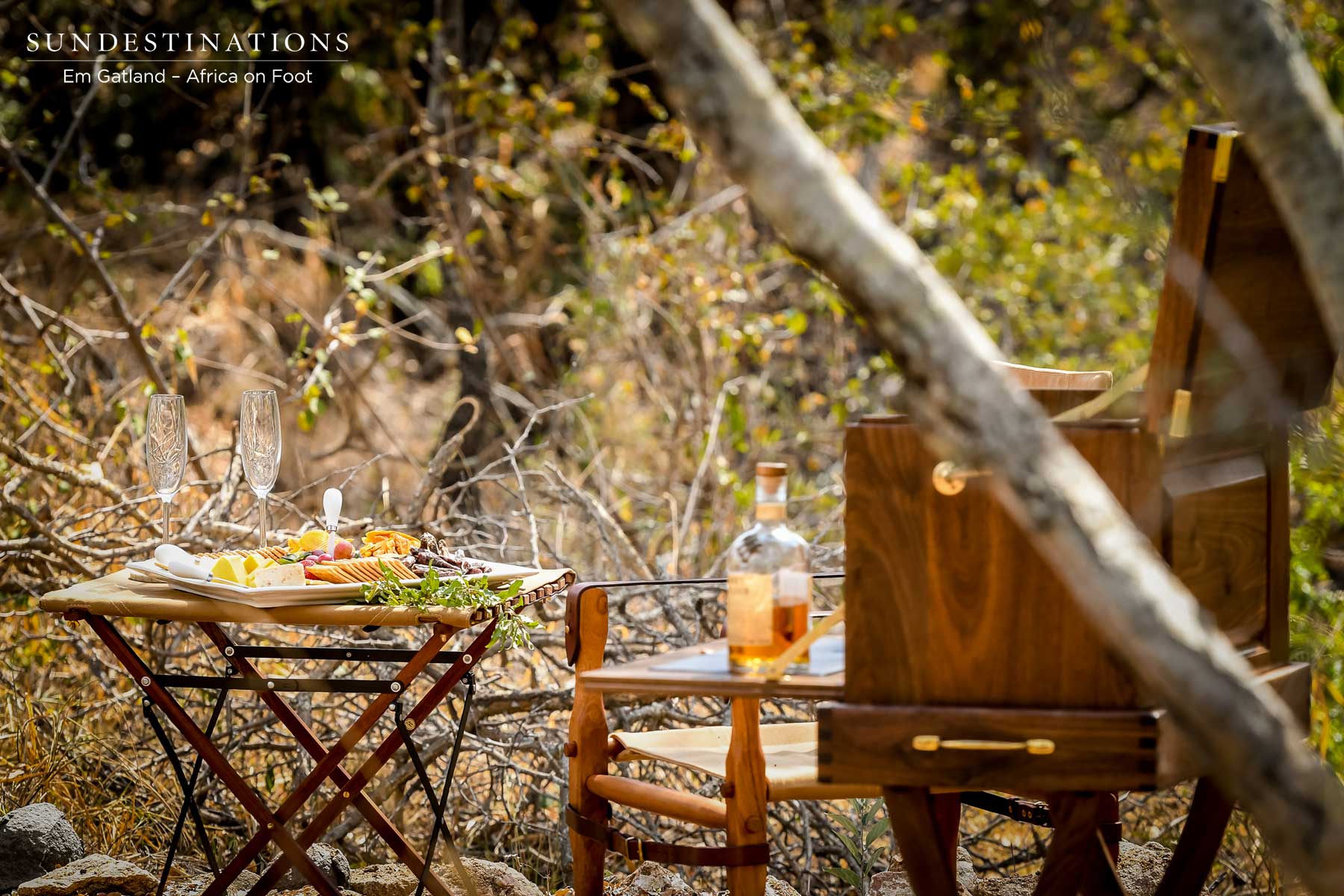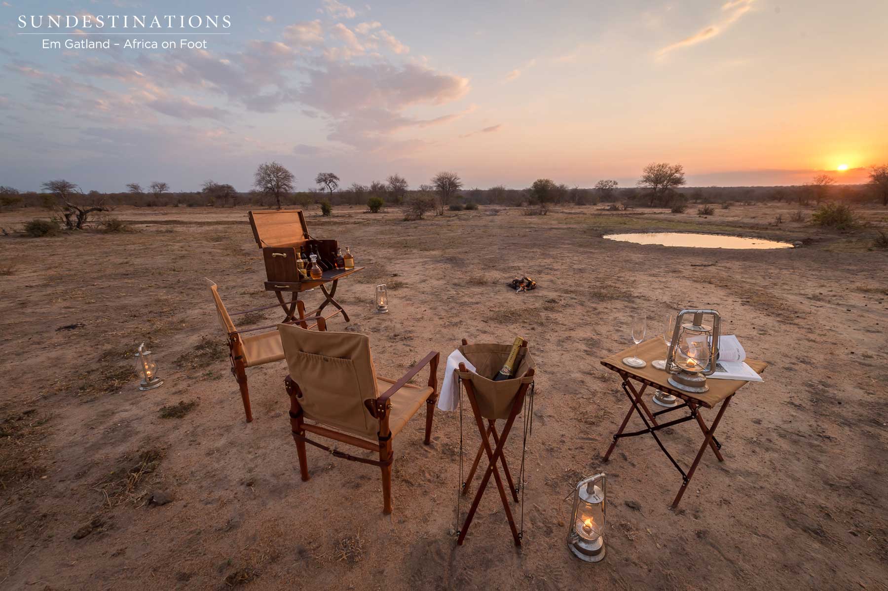 Imagine a sophisticated honeymoon sundowner experience that marries harmonious scenic surrounds with bushveld elegance. Our latest added value safari experience lets you indulge in a unique, pre-arranged sundowner escape with a touch of safari style that lends itself to an atmosphere of a bygone era – where things were traditional and classic. This is the ultimate intimate sundowner experience for those die-hard romantics that desire an iconic safari experience combined with practical decor elements to enhance the much celebrated of golden hour. While you’re cheers-ing to a blissful life ahead with your glass of fine champagne and the trumpeting of elephants in the background, we ensure that your entire bar, seating and sundowner set-up are furnished with the latest products from Melvill & Moon – purveyors of high-end craftsmanship and handmade safari gear.