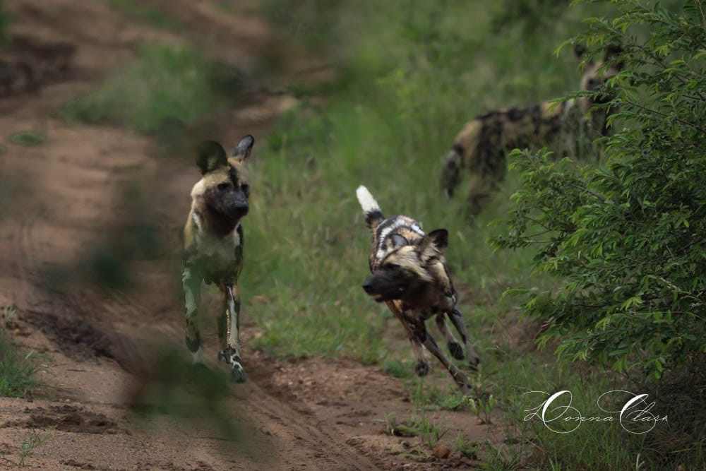 During denning season, which is happening right now! Keep an eye out on our socials for dens near our camps! Packs hone in on their normally vast roaming ranges, choosing instead to base themselves in a single location, finding a den for their pups. They will typically seeking out uninhabited termite mounds. Life during denning season is all about balance.