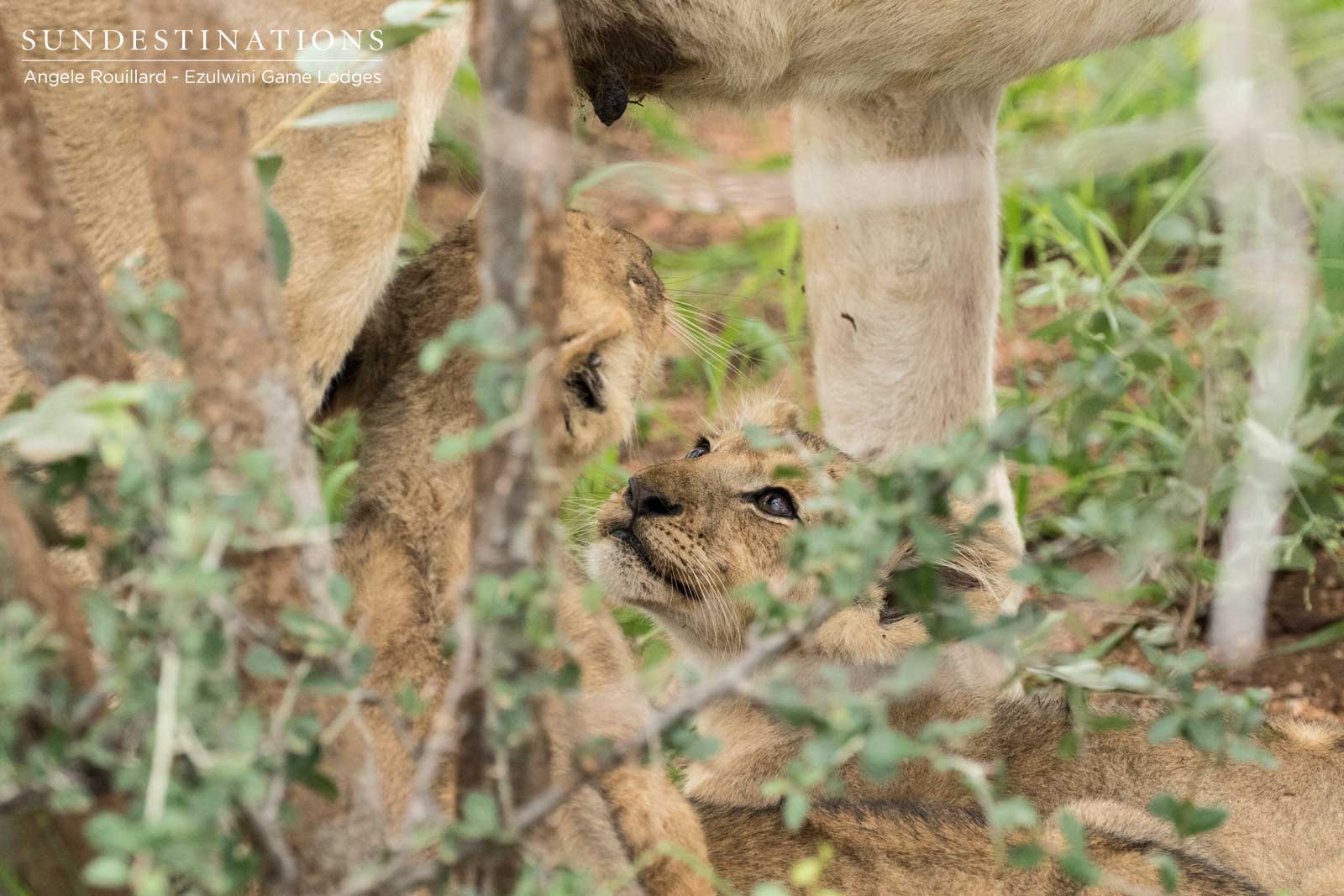 - One of the Kudyela lionesses and her 3 cubs.