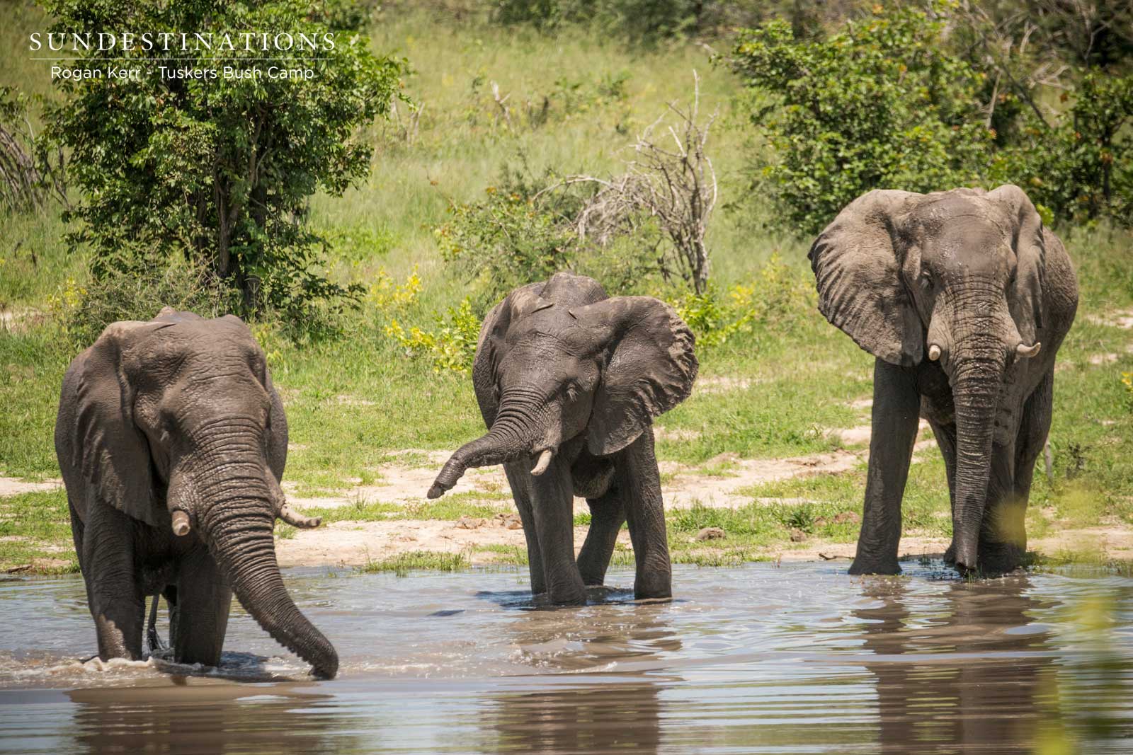 - Watching elephants from the comfort of camp at Tuskers. They tend to frequent the waterhole at camp and with the waterhole full to the brim from recent rains, it’s that much more attractive to the pachyderms.