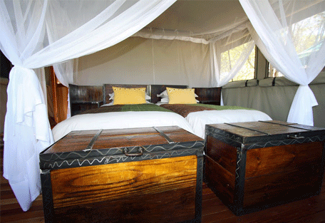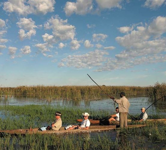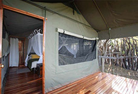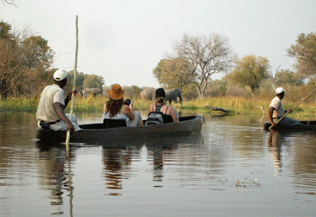 The Sango Safari Camp lies comfortably on the edge of the Khwai River in the Okavango Delta and borders the world-renowned Moremi Game Reserve. Sango is located in a prime positio; offering the best of both land and water safaris. Wildlife roams freely throughout the Khwai Concession and the Moremi Game Reserve – the Khwai River forms a natural border between these wildlife rich regions. Guests can enjoy traditional Mokoro trips in dug-out canoes, night game drives and even adventurous bush walks. There is also a cultural village nearby for those interested in local customs and cultures.