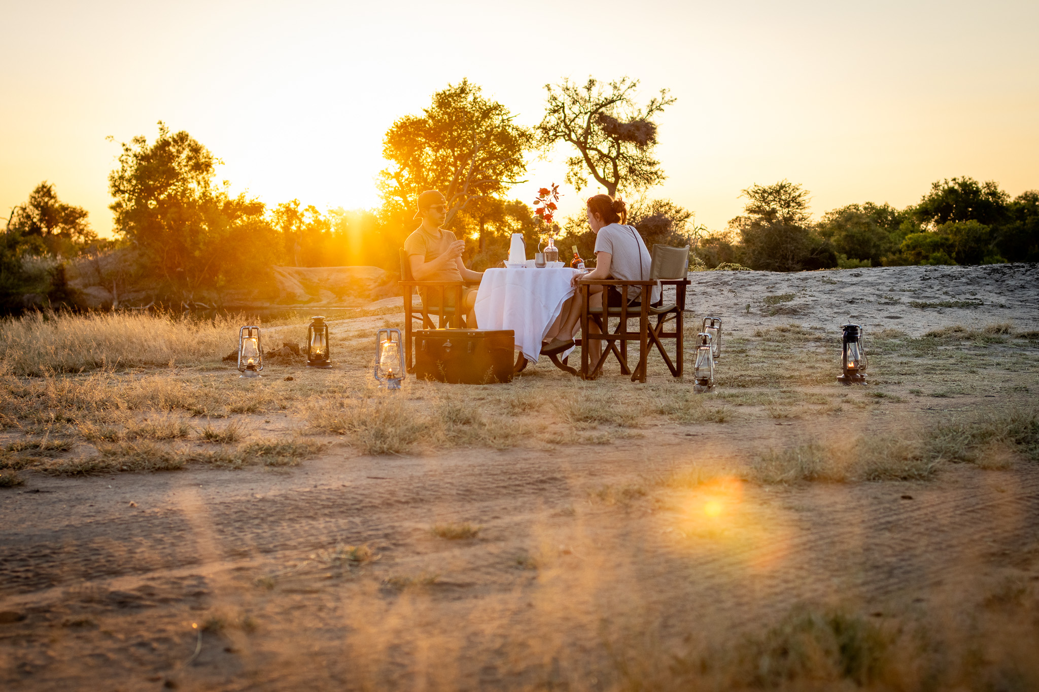 Each camp has its own way of doing sundowners. Some with secret spots that shift with the seasons, others with iconic setups that never fail in taking your breath away. At Africa on Foot, nThambo Tree Camp, and Chacma Bush Camp, guests can enjoy a Honeymoon Sundowners Special. An intimate and beautifully arranged experience that can be booked in advance and ensures an extra-special moment for you and your loved one. Other camps may offer similar setups on request, sometimes with an additional cost. The intention is to create something intimate, magical, and completely unforgettable.