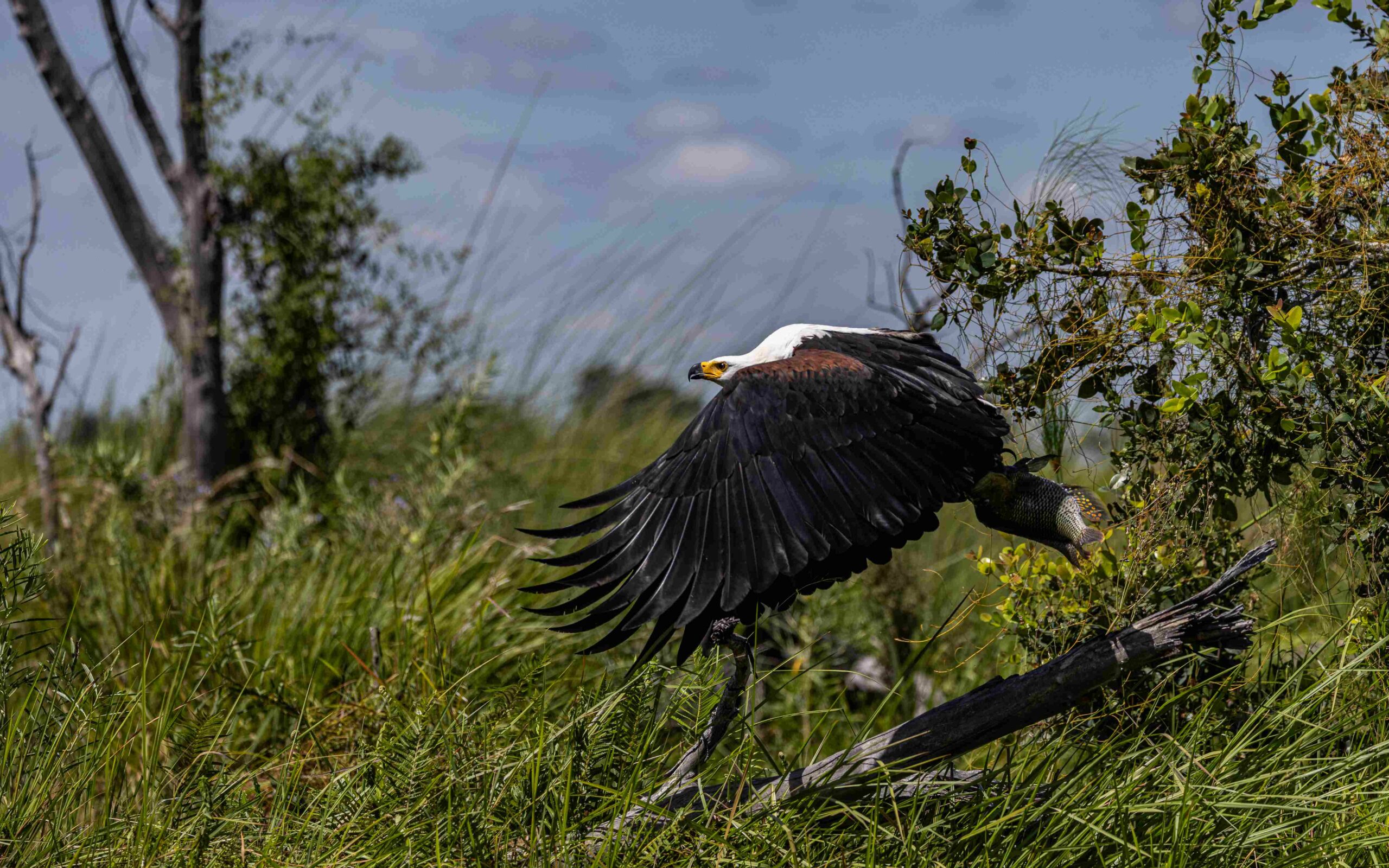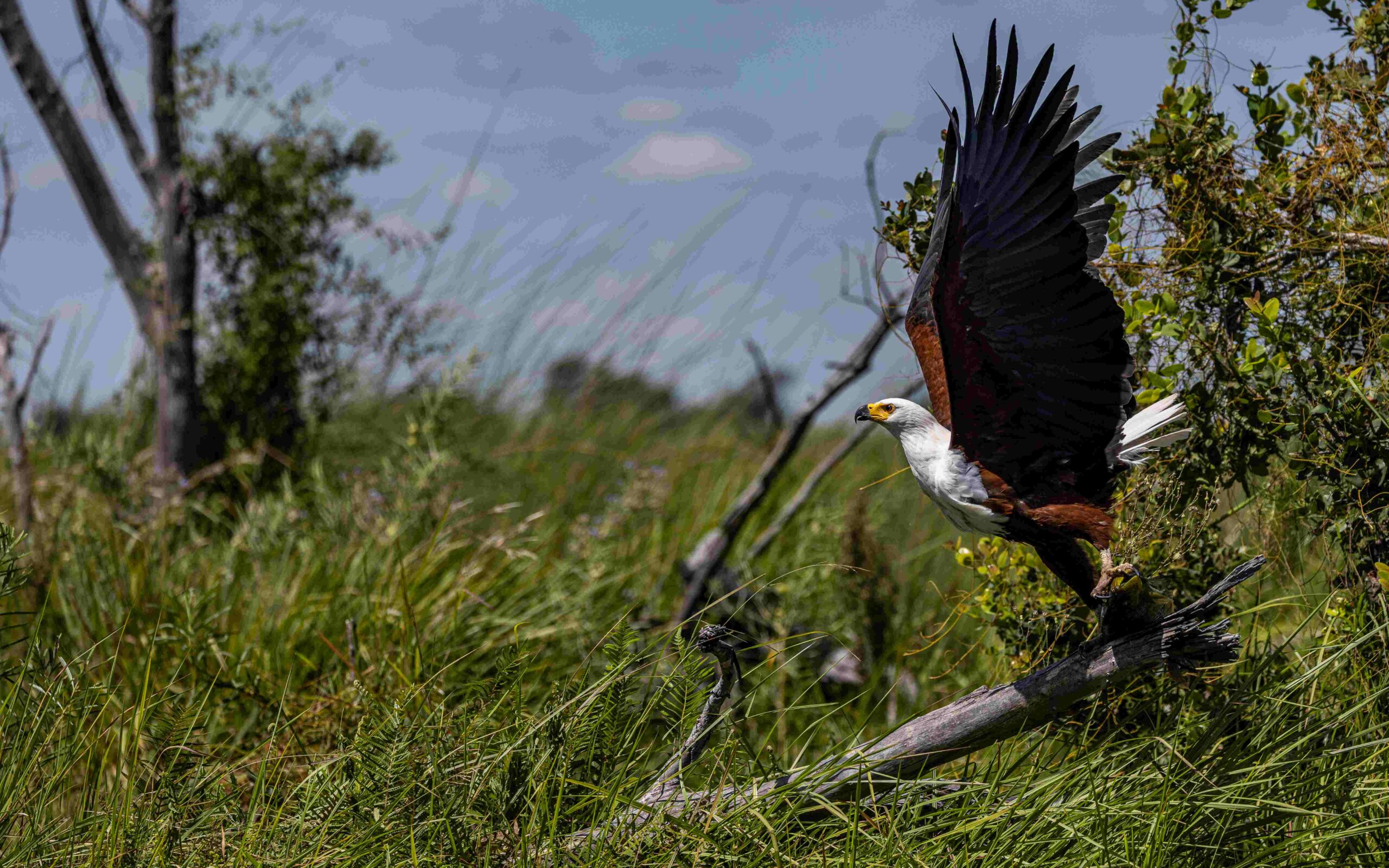 Ah. This is Africa’s iconic bird of prey, where we all know its call as the “sound of Africa”. The unmistakable yodeling of majestic fish eagle matches its regal appearance. The African Fish Eagle is found throughout southern Africa where there are large bodies of water and abundant sources of prey. You’ll definitely hear their call before you see them soaring in the skies or perched comfortably on branch above the waterways.