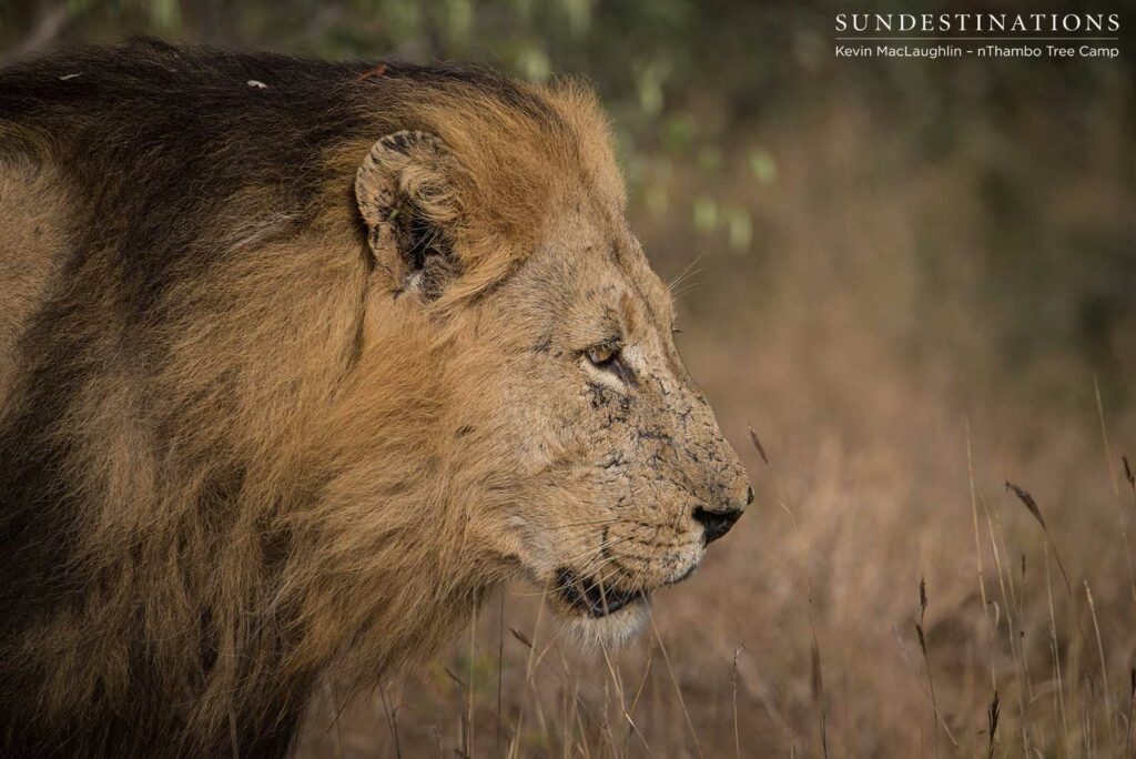What a moment to see this unmistakable lion again. His ferociously scarred muzzle, worn teeth, and a swollen elbow joint, which has clearly not slowed him down, were dead giveaways of his identity. He looked as tough as ever, and he now has a younger, large male at his side. What’s more is that there are 3 lionesses linked to this young male, which were not seen at the time, but were heard calling from a neighbouring property; a direction in which the two male lions were headed. We don’t know for a fact that the lions calling were the 3 lionesses we know to be affiliated with the younger male, but it is a possibility.