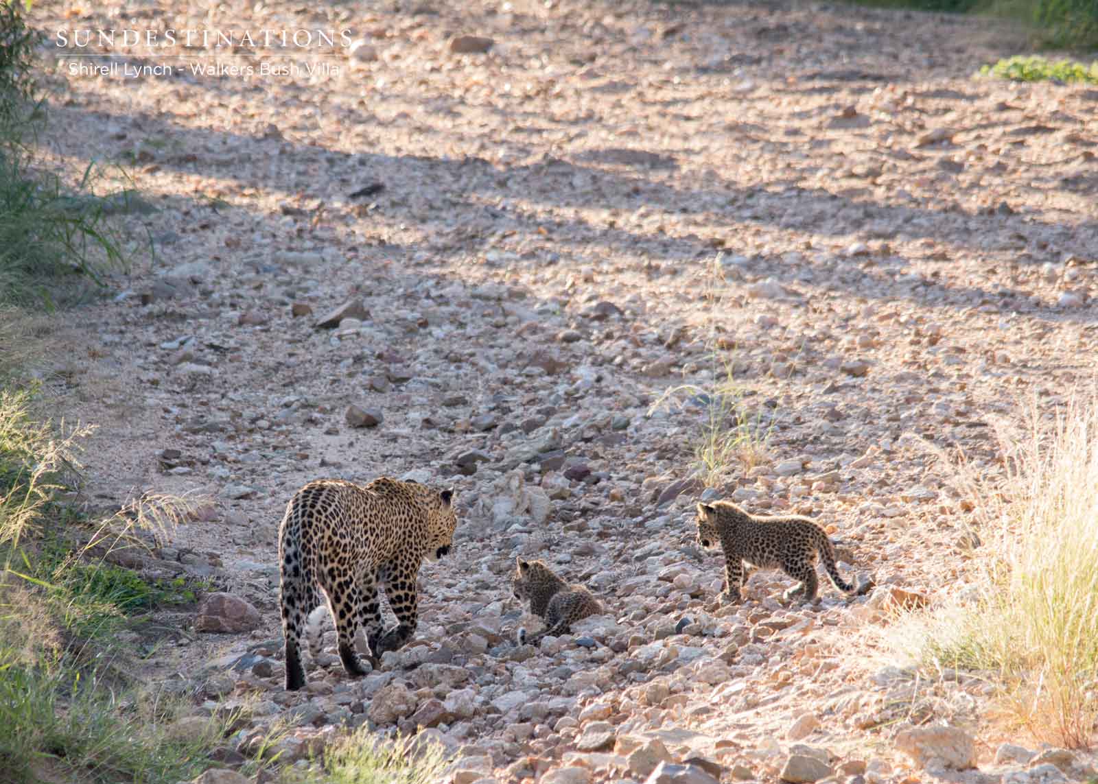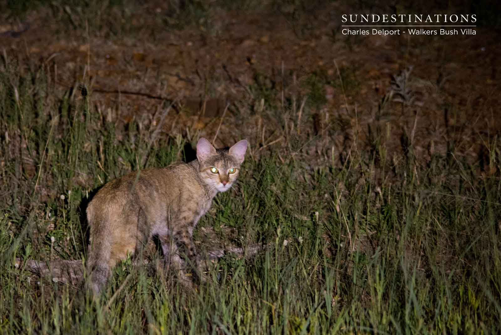 Let’s start with our favourite Panthera sighting of the week. This goes to Walkers Bush Villa in the Timbavati Private Nature Reserve. Shirell and Charles spotted the Savanna female leopard with her two tiny, tiny little cubs. The mother wasn’t seen mating with any males, so we don’t know who sired the cubs. Lions have been spotted around the villa, and there have also been close-up sightings of an African wild cat.