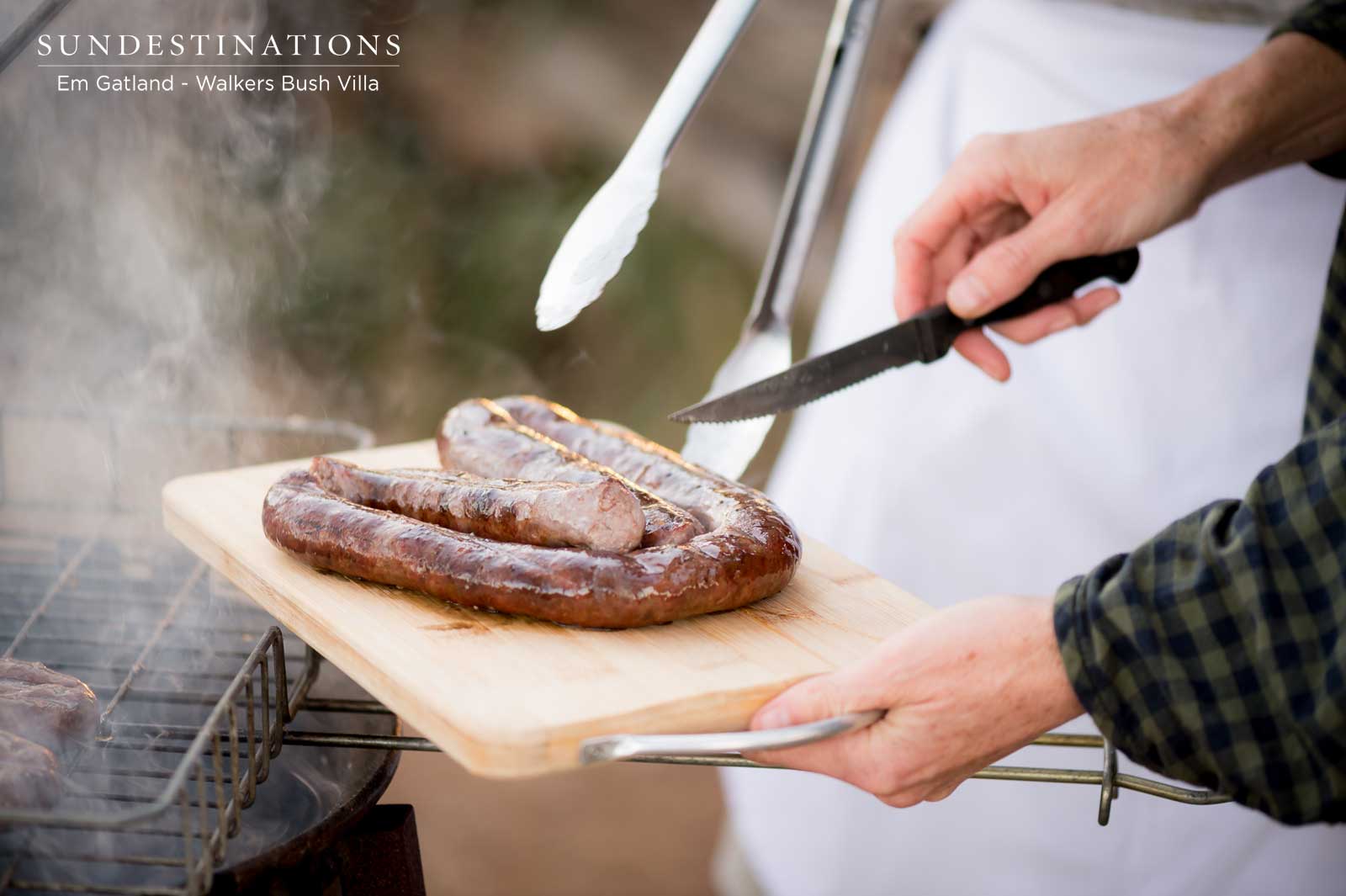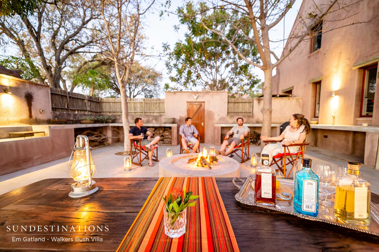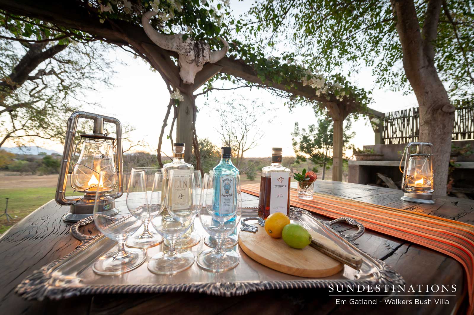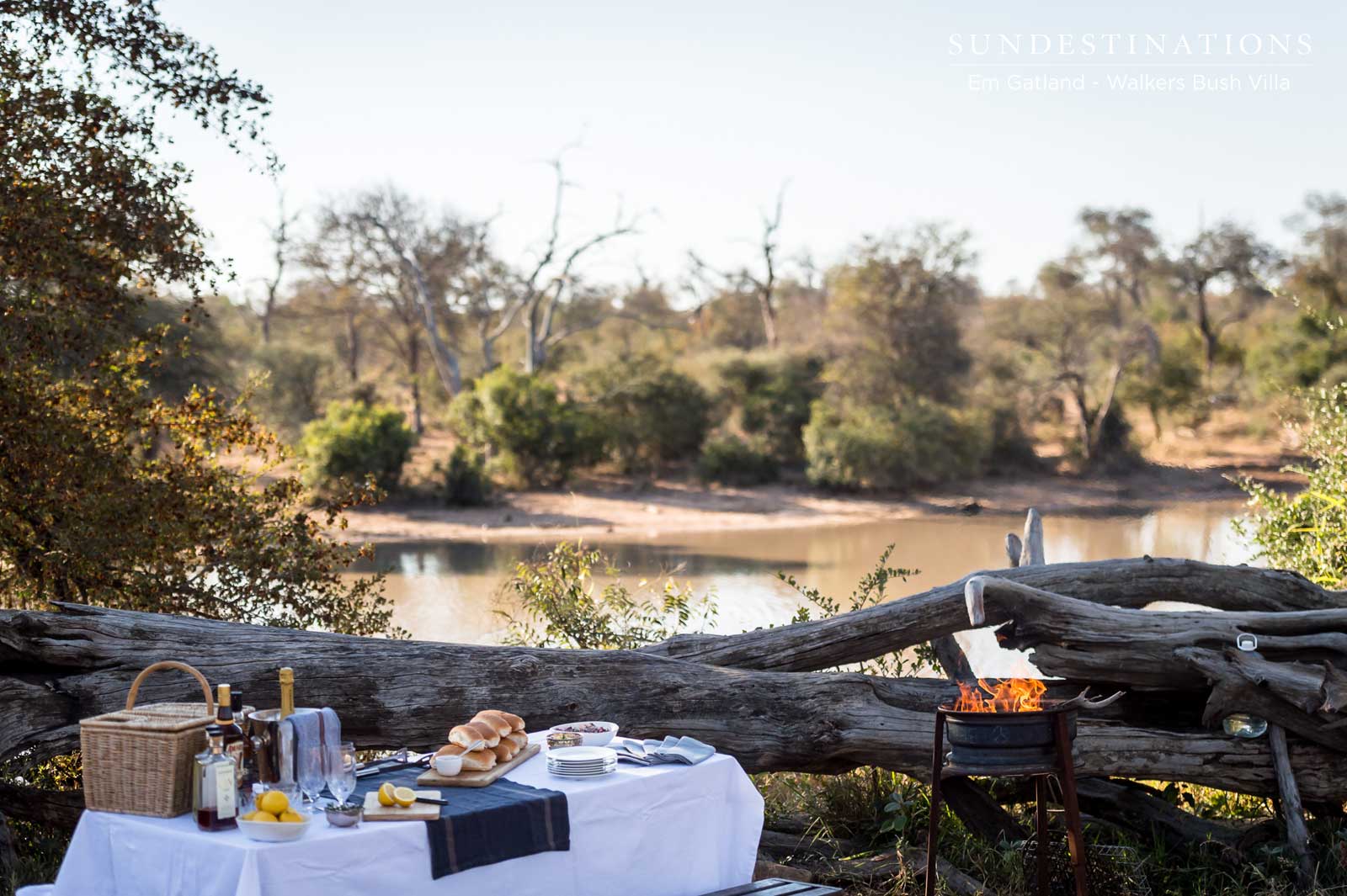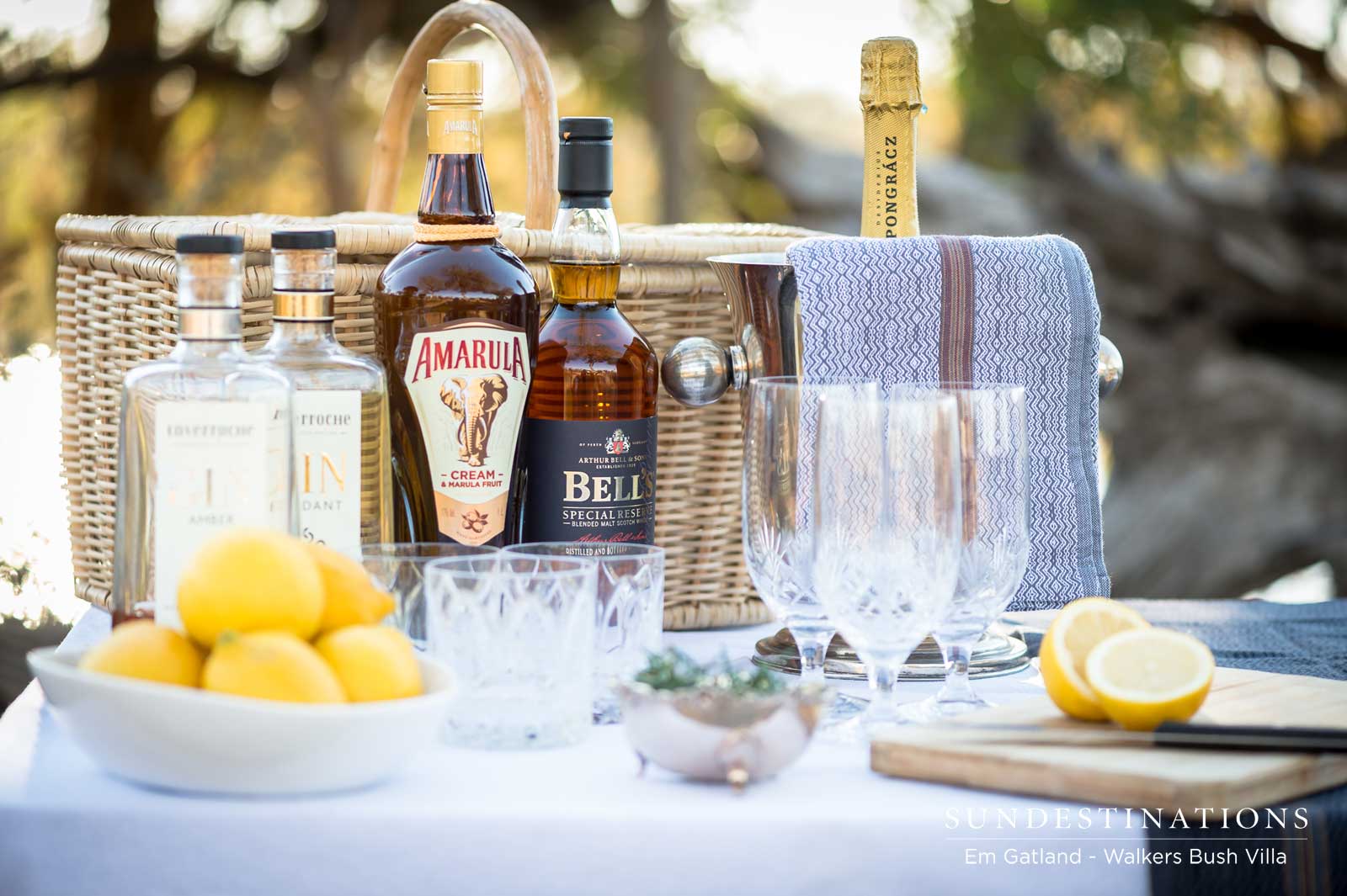 Walkers Bush Villa offers an intimate and exclusive private safari experience, with top guides and chefs at your disposal. After scrumptious breakfasts, luscious lunches, and some downtime on the lawns surrounding the pool; your guide will usher you into the vehicle for the afternoon game drive. After a couple of hours tracking and viewing wildlife, a prime location is selected for sundowners. The sundowner session can involve anything from an elaborate interlude of snack platters and gin tasting, to simple drinks, and even bush braai sessions.