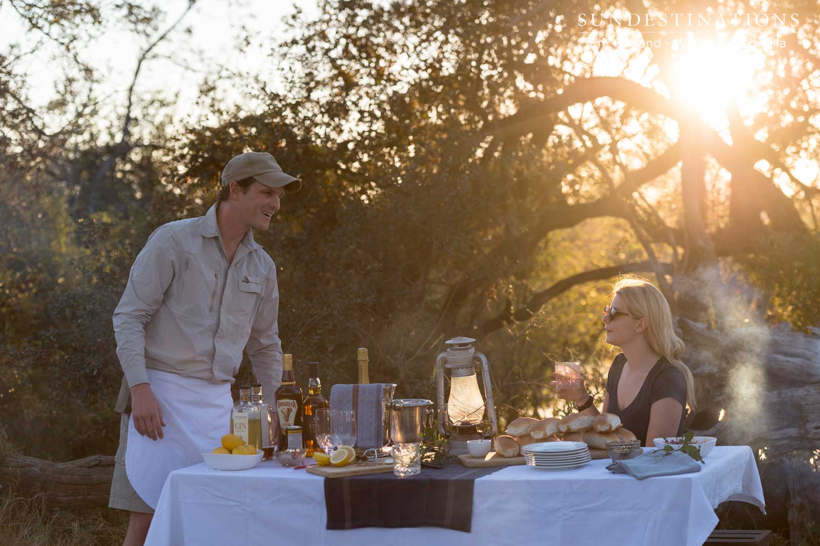 The sundowner session is a much celebrated time of day, which is often referred to as golden hour. Watching that blazing ball sink into the savannah and smother the blue sky with its confident yellows and oranges is always a sight to behold. The Walkers team celebrates sunset with much gusto, and will tailor-make a dining experience according to your group.