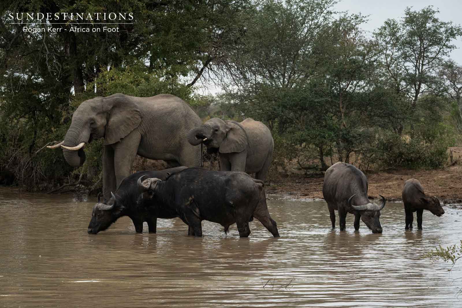 The radio suddenly crackles and one of the guides from a neighbouring lodge discloses that they had seen two ndlovu at Jason’s Dam, if we were interested to come have a look. JC confirms, and proceeds to drive a bit faster. Of course, none of the foreigners know what the Zulu message meant, but I get excited at the prospect of seeing elephant.