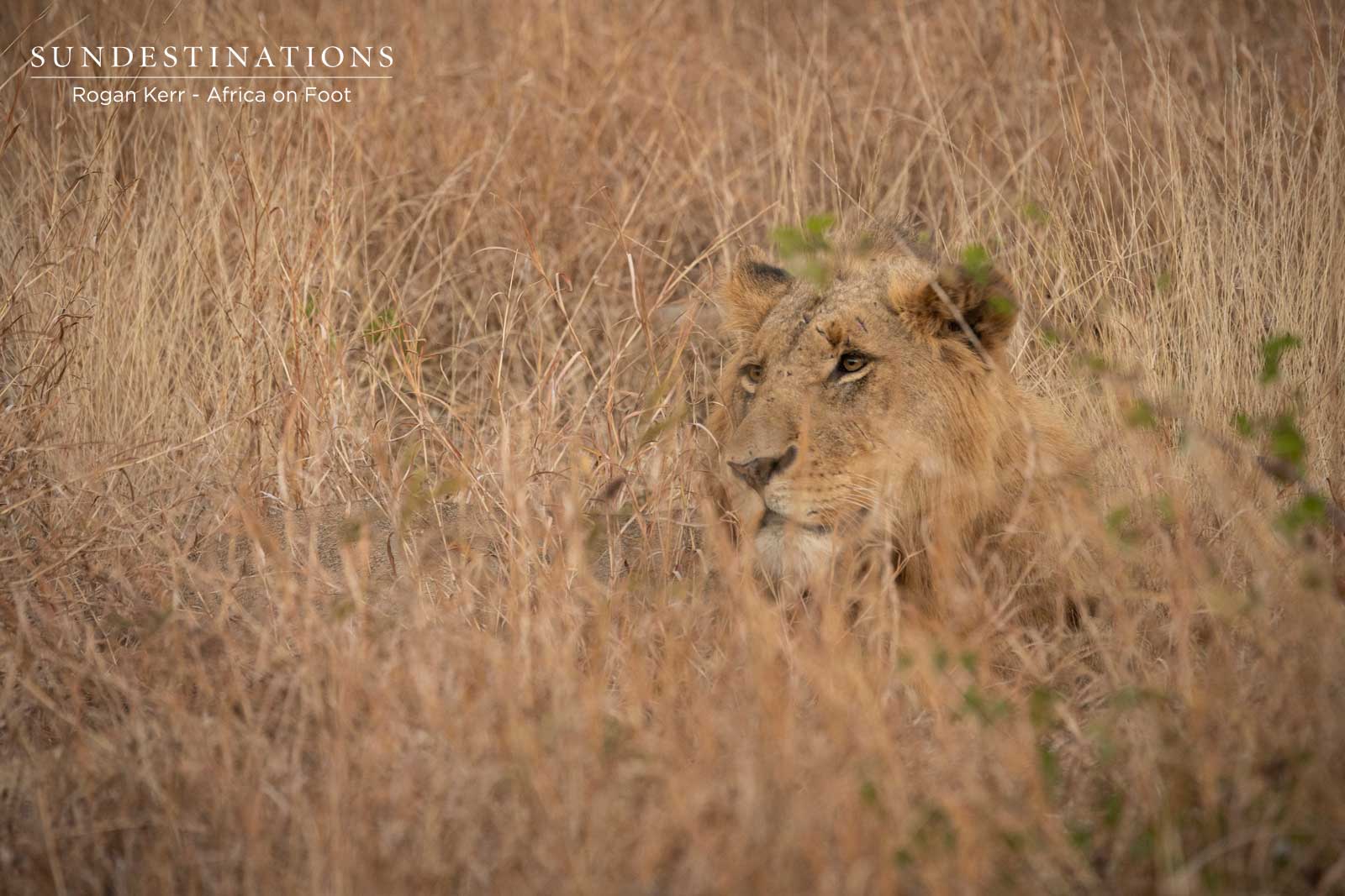 Moments later, JC shuts off the engine and points. Someone in the back of the vehicle gasps. Slowly, a tawny figure emerges from the long grass, and then another, not 20 metres from our viewer. Two adolescent brothers are stalking through the yellow grass, and covering ground rather quickly, likely on their way to a hunt. We follow the two lions for a short while, until we lose them in the undergrowth.