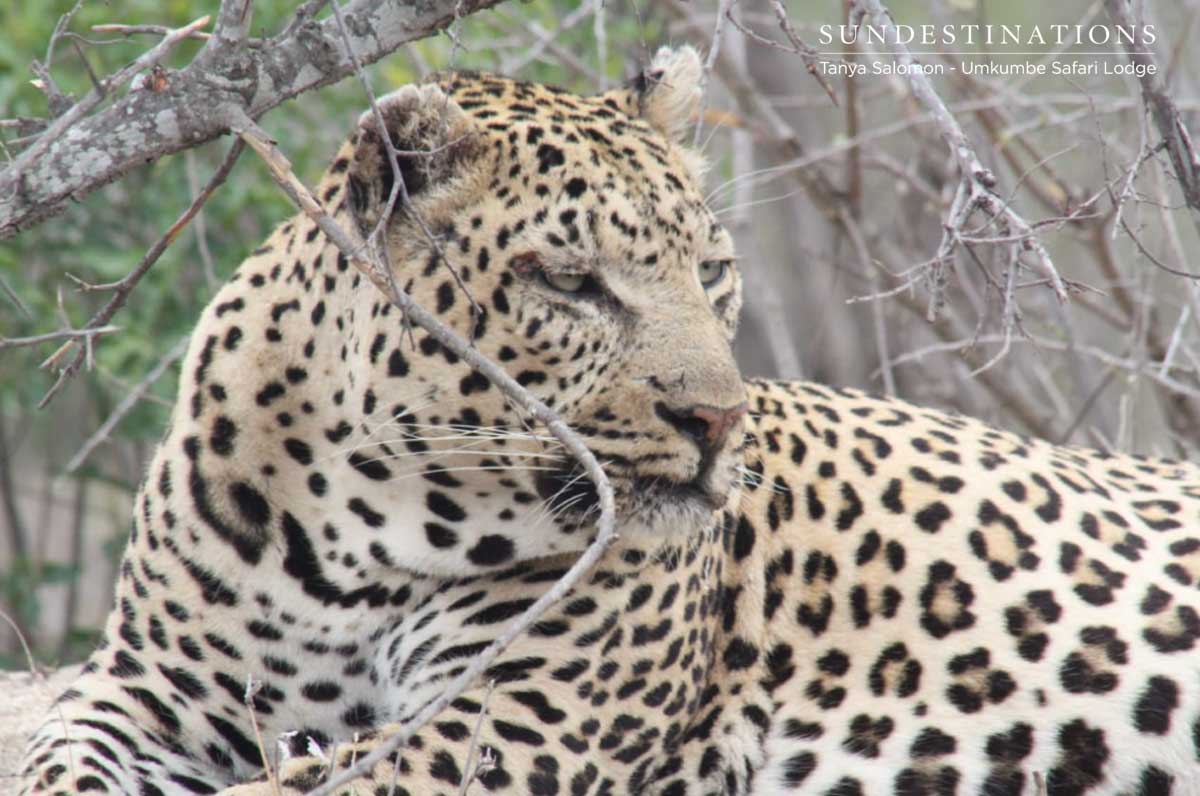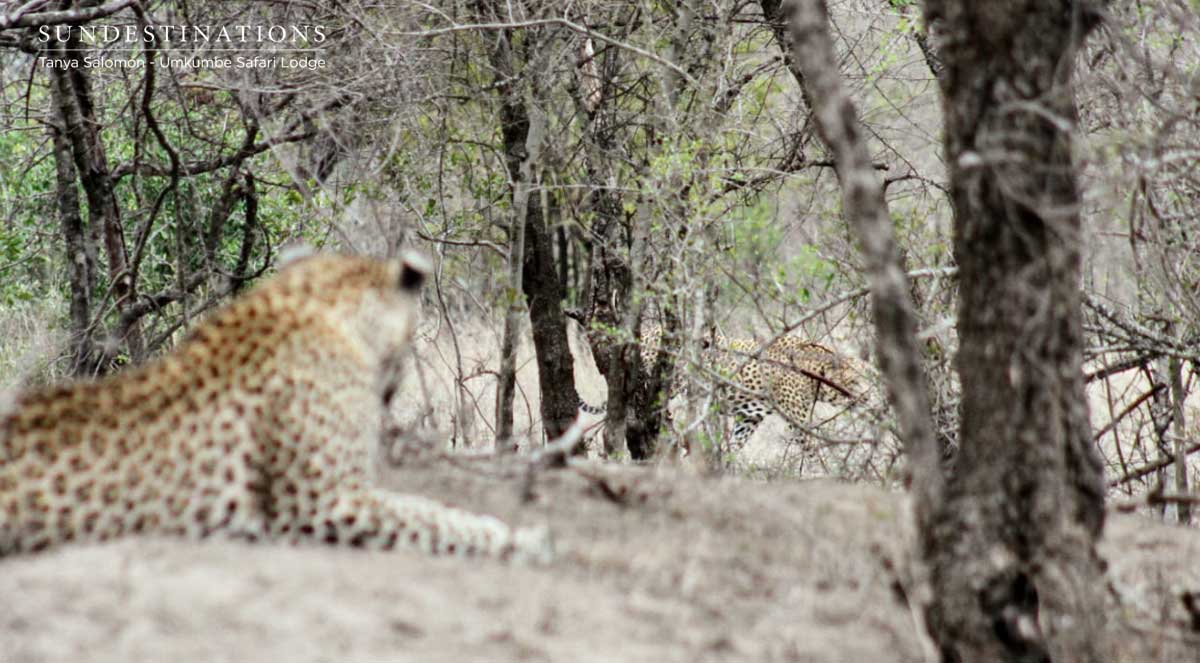 Guides at Umkumbe have witnessed the animosity between these two leopards, with plenty of underlying tension becoming more apparent over the past weeks. We’re pretty sure Miles, Geoff and Tanya are keeping an eye on the leopard shenanigans. Who will stay? Who will flee? Will one of them die in a brutal battle? This we cannot predict!