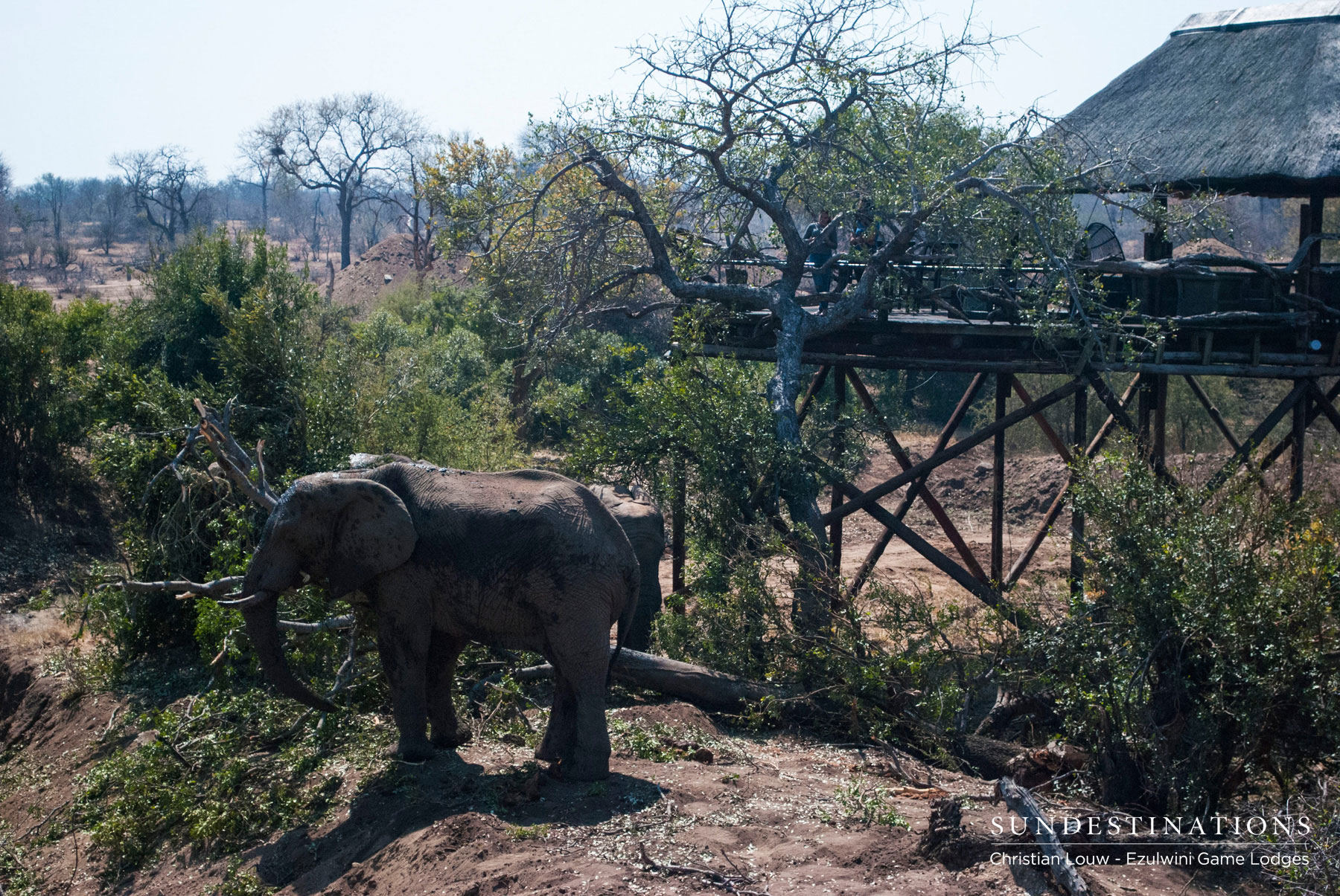 While out on morning game drive rangers stumbled across the two Machaton male lions snoozing in the early morning light. Their stomachs were full – a clear indicator that they’ve enjoyed a recent kill. The Machatons are still causing the Mohlabetsi boys to go on the run, and have even taken to causing a stir with dominant lions in neighbouring reserves. The Machatons are young males in search of territory – they will stop at nothing! The elephants have been frequenting the skywalk at Billy’s and taking to enjoying the readily available sources of water. Guests have enjoyed observing the elephants frolicking in the mud – quite a sight to behold.