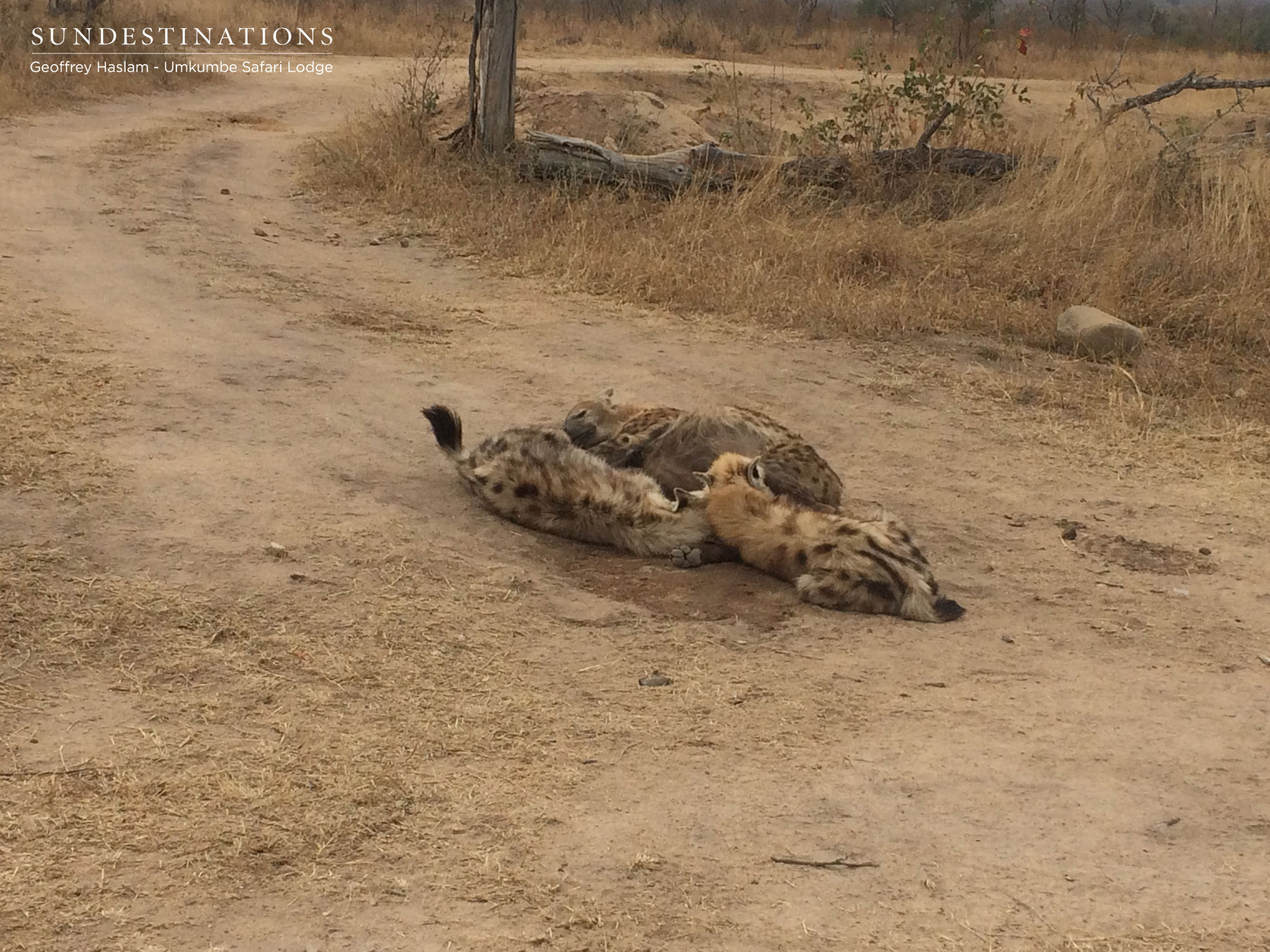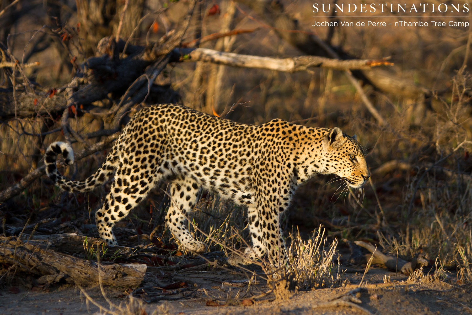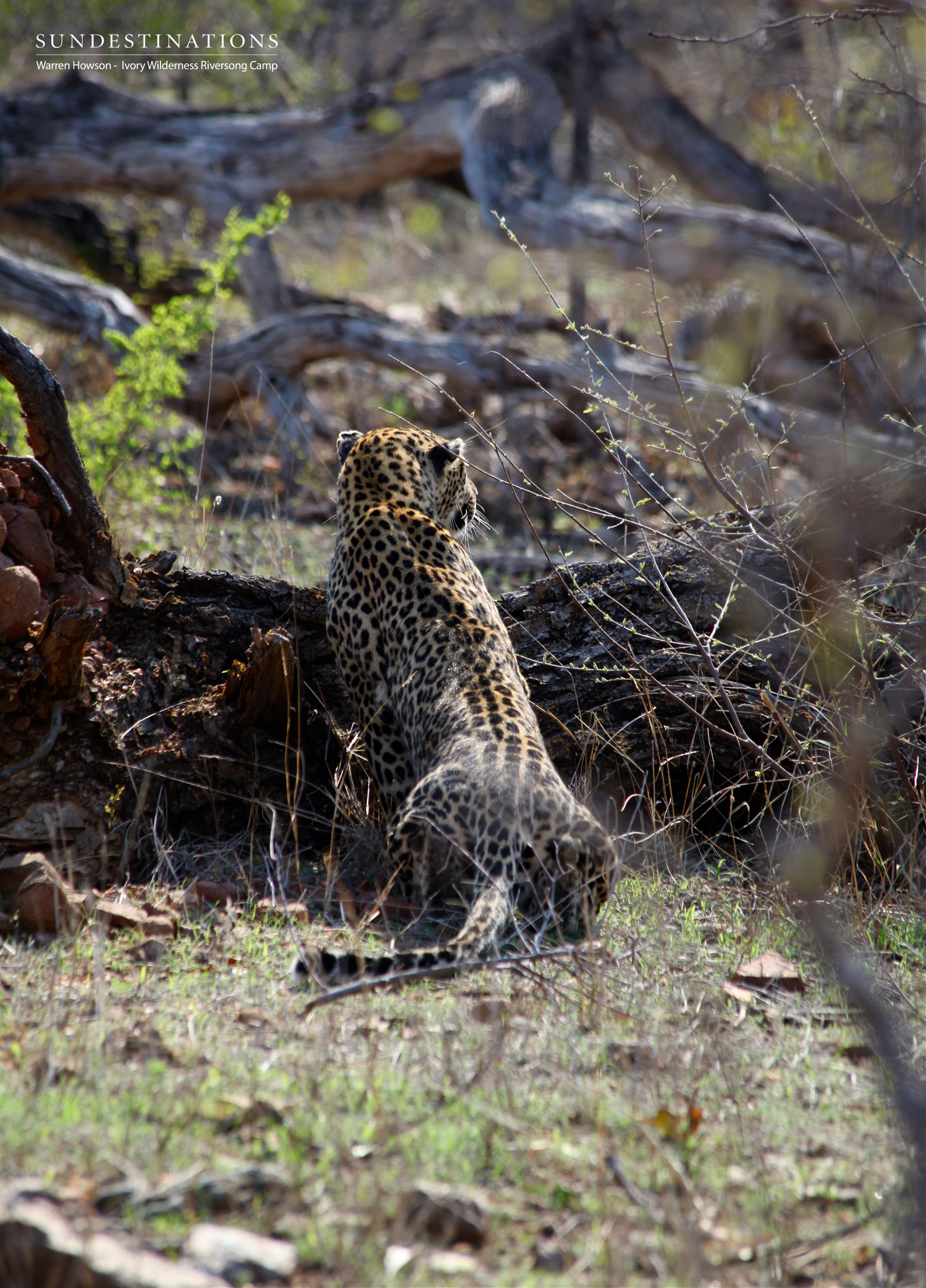 The highlight was the discovery of a hyena den, which meant guests were afforded the opportunity to observe the cubs playfully picking up sticks and exploring their new turf. Ivory Wilderness Riversong Camp certainly isn’t short of sightings, and has recently witnessed a local leopard cruising the dry riverbed in front of camp. Warren and his team have also stumbled across bundles of hyena cubs in their den, slowly emerging from the safehouse.