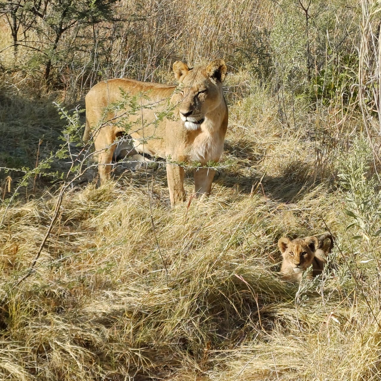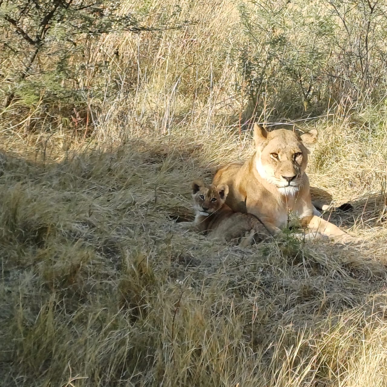 Owner Kavi frequently sends through sighting updates from these day trips, ensuring we’re no stranger to his regular sightings of zebra, lechwe, lions, wild dogs and those giant jumbos (elephants). But a few days we were treated to a special update. While out on the full day Moremi Game Reserve activity, the team came across two lionesses with five very small cubs. Their vigilant stance revealed the protective cats’ keen alertness, ensuring the safety of the cubs from any potential threat. Typically, lionesses will stash their cubs in a safe area for at least 6 weeks before introducing them to the rest of the pride.