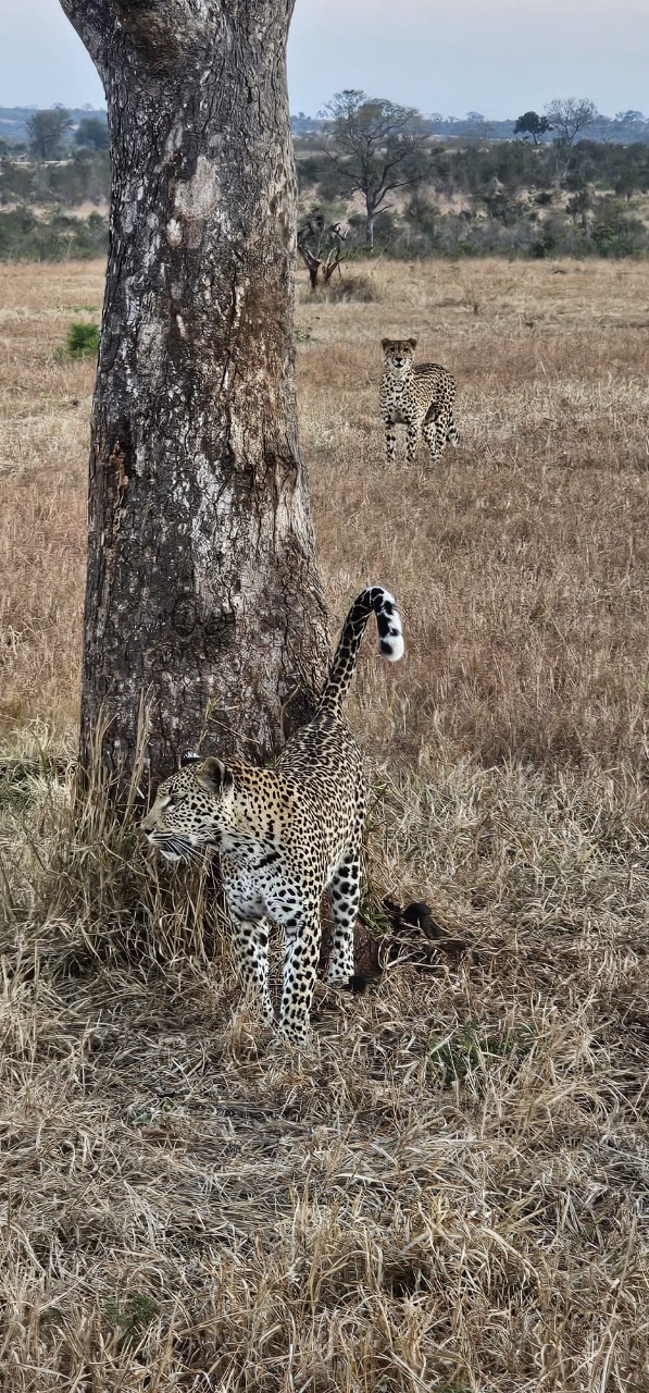 In recent weeks, Africa on Foot has witnessed a few mad moments with the killing cat machines of the Klaserie. Let’s unpack this a bit. A lone leopard was spotted snacking on a recent warthog meal…on the ground. Leopards usually hoist their meal up into the treetops to avoid theft from hyenas. If they choose to devour their latest takedown on terra firma, it means they perceive there isn’t much of a threat in the area. This particular leopard was seen swaggering around a full belly; which made it quite a rare sighting (leopards often look sleek and agile).