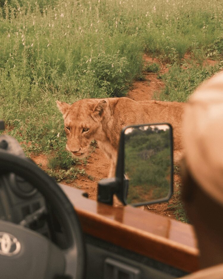 One of the most memorable moments was when a lioness walked calmly alongside our vehicle during a game drive at Nambu Camp. She stayed close for quite some time and allowed us to observe peacefully.
